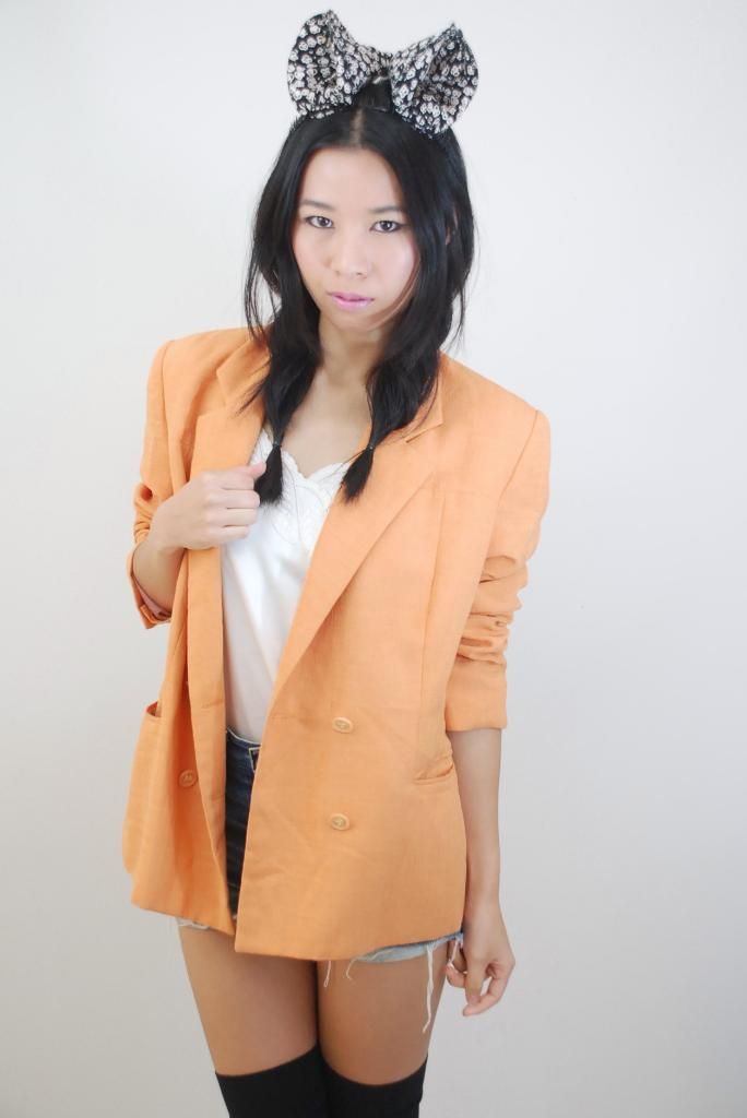 80s VINTAGE PASTEL ORANGE PAD DOUBLE BOYFRIEND BLAZER