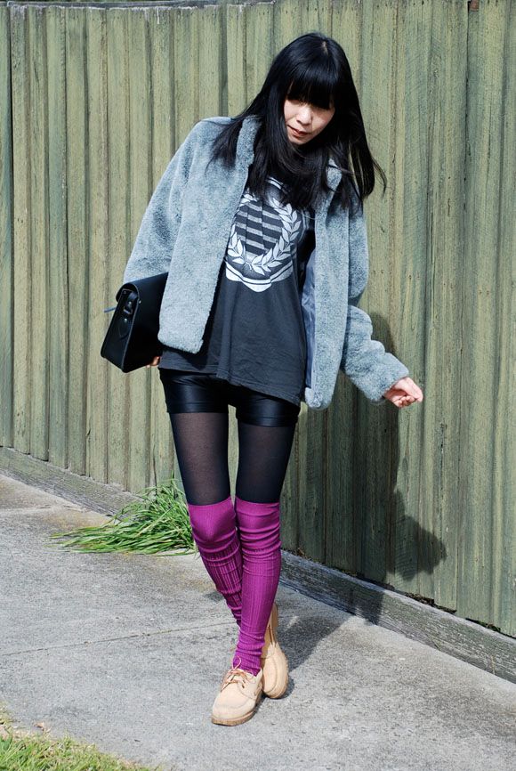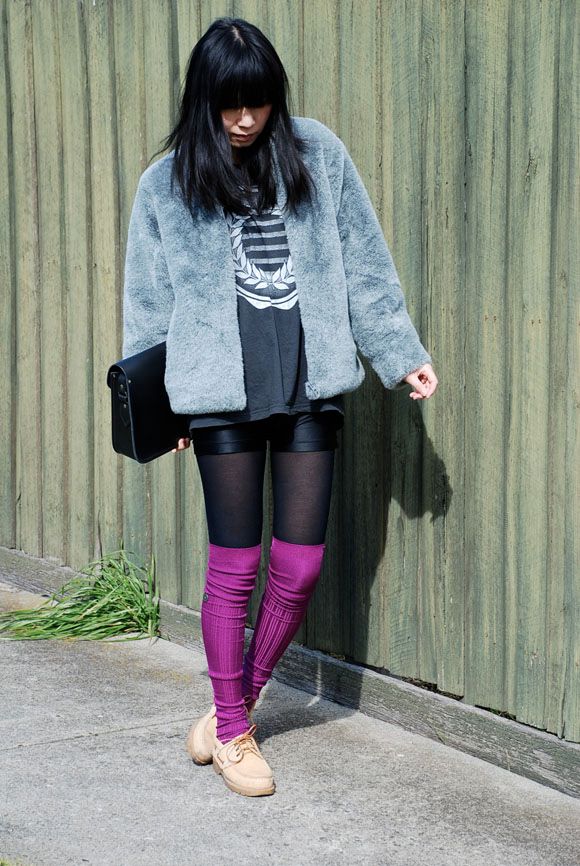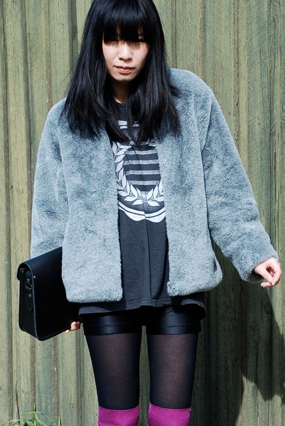 { Faux Fur Jacket: Thrifted; Tee: Cotton On; Shorts: American Apparel; Leg Warmer: Adidas by Stella McCartney; Loafers: Thrifted; Clutch/Bag:Cambridge Satchel } Dear Spring, I've added some colour for you, when will you arrive??? Excuse my fringe, it's growing so fast, need a fringe trim. // 春天啊,我已為你添上色彩,你何時會來臨?? |