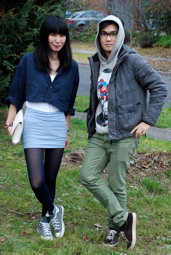 {Cropped Shirt: DIY; White Sweater: Agnes b.; Skirt: Supre; Sneakers: Converse; Clutch: Vintage} Have cropped a thrifted shirt myself the other day and am really happy with the outcome!Do you guys like it?It's comfy, flexible, and very easy to style! I'm going to crop a few more ~ Douggie, one of my best friends and shopping mates, was back from Sydney last week. He's a self-proclaimed up and coming underground fashion icon and is desperate for a feature post at Ezzentric Topz, so there you go,lol!!His sneakers are cool, aren't they?! Have already done an outfit shot with my Dr Martens, can;t wait to show you guy~!have a lovely weekend!! xxx |